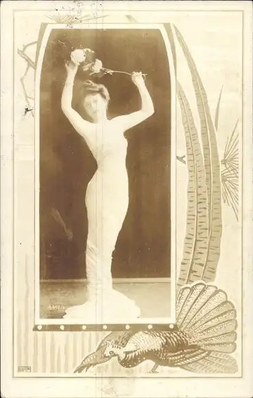Passepartout Ak Standporträt einer Frau, Auerhuhn