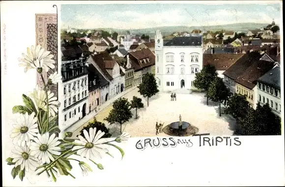 Passepartout Ak Triptis in Thüringen, Teilansicht mit Marktplatz, Rathaus