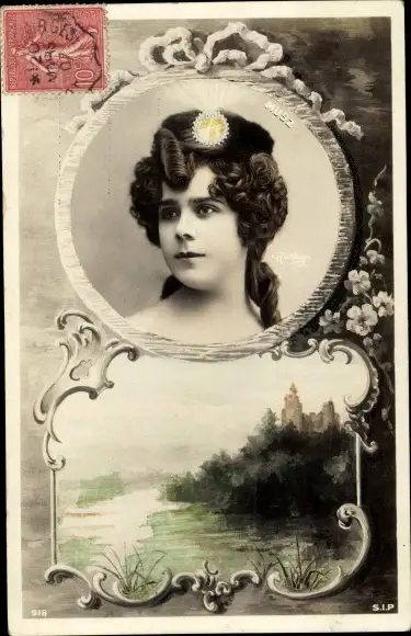 Passepartout Ak Variete Künstlerin Musz, Portrait mit Hut