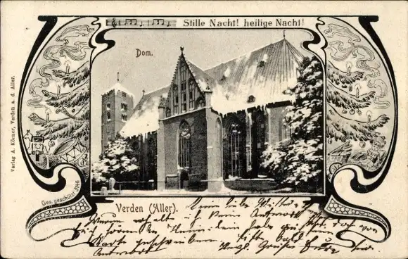 Passepartout Ak Verden an der Aller, Dom im Winter, Stille Nacht! heilige Nacht!