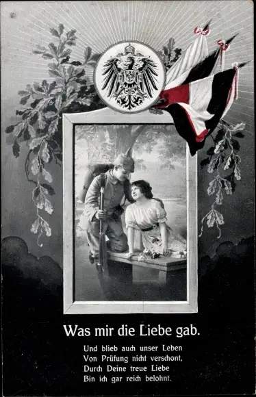 Passepartout Ak Was mir die Liebe gab, Soldat, Liebespaar