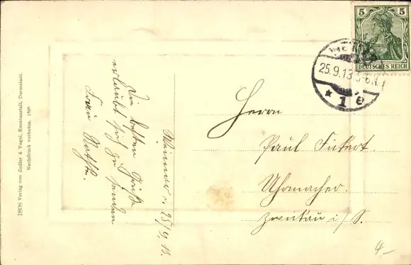 Zustand, siehe Scan, gelaufen, 1913 - ca 14 cm X 9 cm