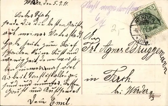Zustand, siehe Scan, gelaufen, 1911 - ca 14 cm X 9 cm
