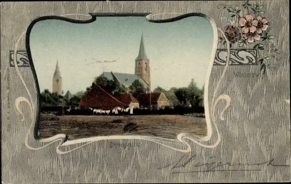 Passepartout Ak Winterswijk Gelderland Niederlande, Teilansicht mit Kirche