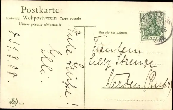 Zustand, siehe Scan, gelaufen, 1908 - ca 14 cm X 9 cm