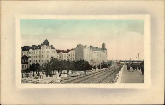 Passepartout Ak Wyborg Wiborg Viipuri Russland, Teilansicht, Bahnhof, Gleisseite