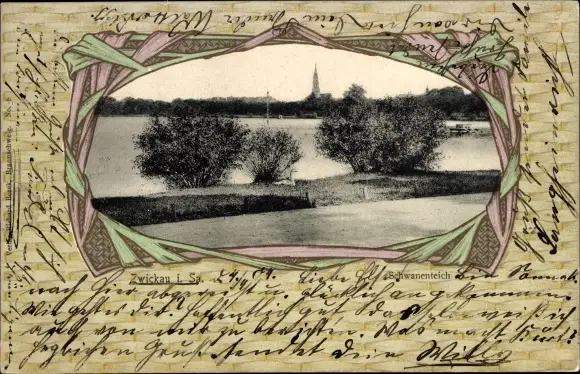 Passepartout Ak Zwickau in Sachsen, Schwanenteich