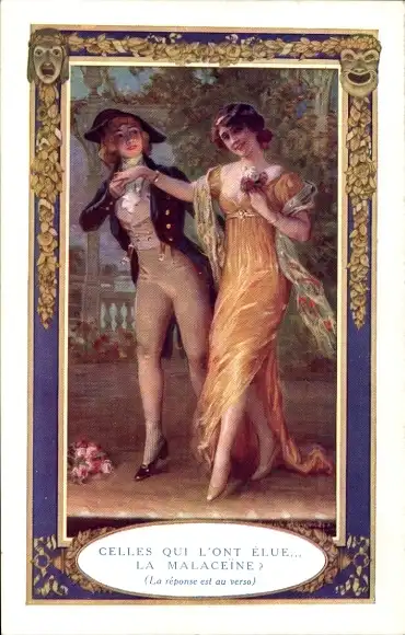 Passepartout CPA Frau in Männerkleidung, Frau in gelbem Kleid