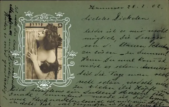 Passepartout Foto Ak Portrait einer Frau hinter einem Vorhang