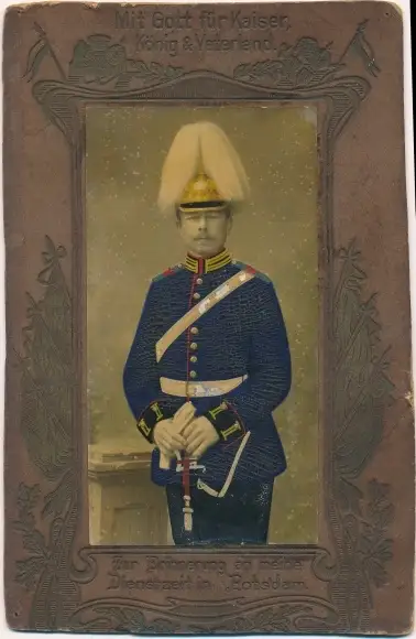 Passepartout Foto Potsdamer Garde Regiment, Soldat in Uniform, Federbusch