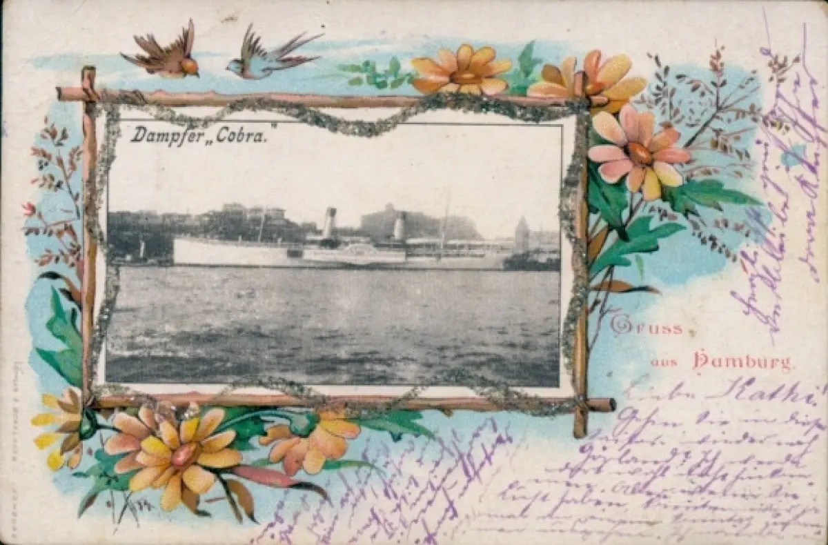 Passepartout Glitzer Ak Hamburg, Dampfer Cobra