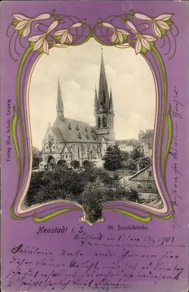 Passepartout Jugendstil Ak Neustadt in Sachsen, Sankt Jacobikirche