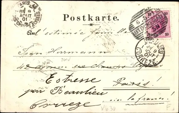 gelaufen 1901, Eckknick links oben, sonst guter Zustand