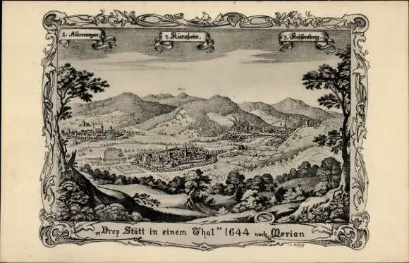 Passepartout Künstler Ak Merian, Kaysersberg Elsass Haut Rhin, Kiensheim, Amersweyer