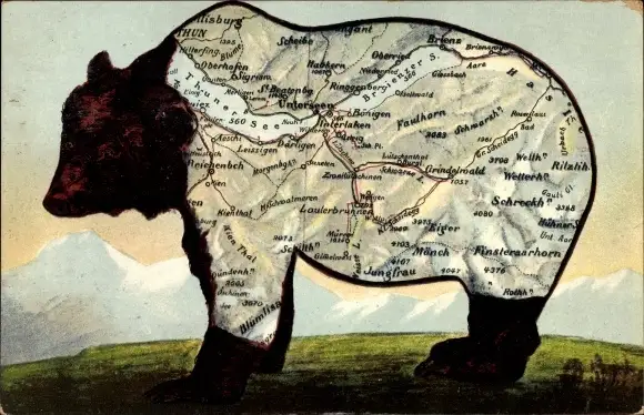 Passepartout Landkarten Ak Interlaken Kanton Bern Schweiz, Thuner See, Brienzer See, Bär
