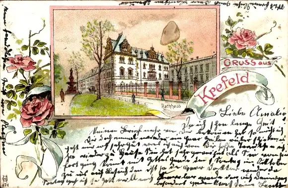 Passepartout Litho Krefeld am Niederrhein, Rathaus