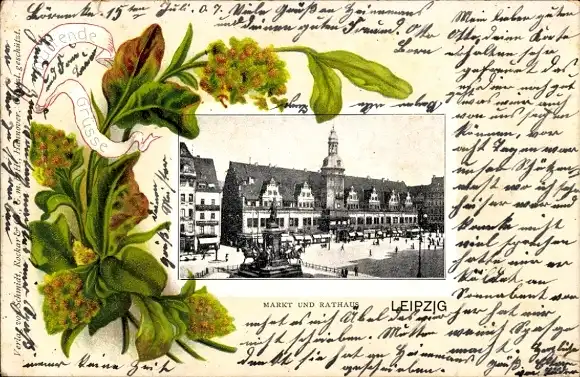 Passepartout Litho Leipzig in Sachsen, Markt, Rathaus