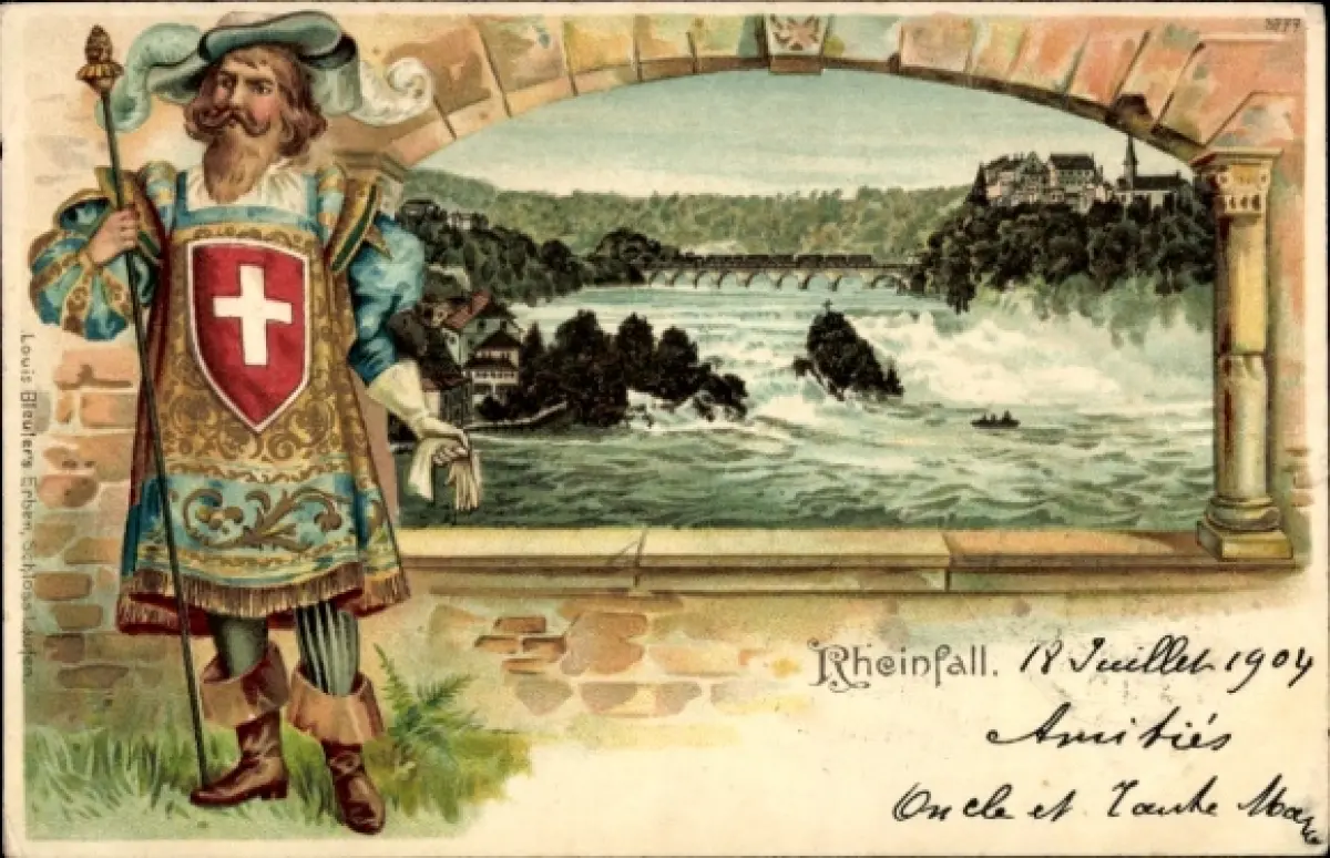 Passepartout Litho Rheinfall Kanton Schaffhausen, Der Rheinfall