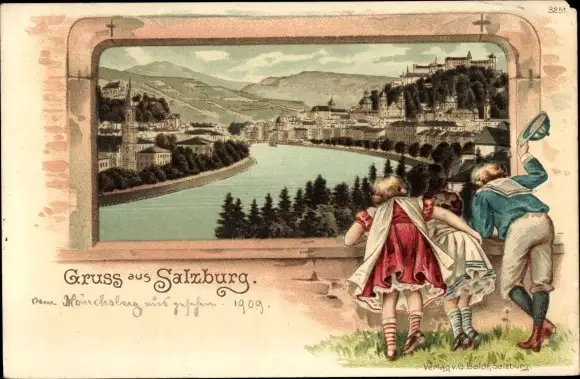 Passepartout Litho Salzburg in Österreich, Stadtansicht