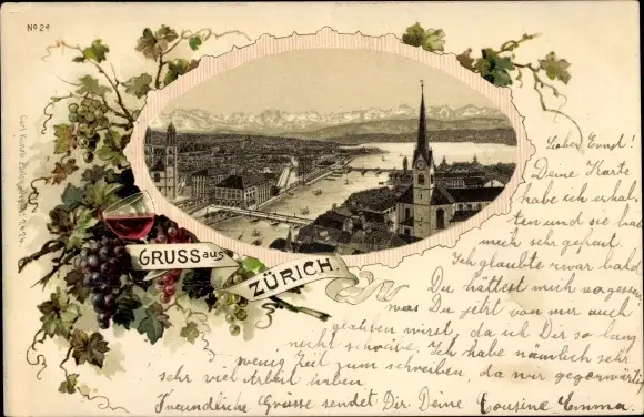 Passepartout Litho Zürich Stadt Schweiz, Panorama, Wein