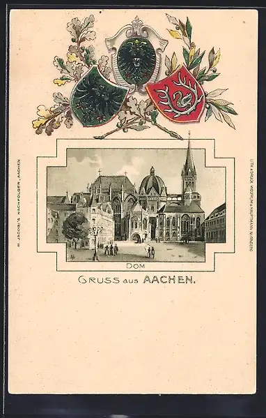 Passepartout-Lithographie Aachen, Dom, Wappen