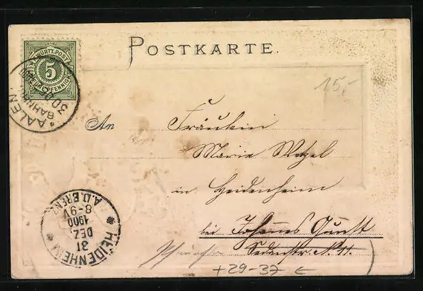 gelaufen 1900, Eckknick re. unten, guter Zustand