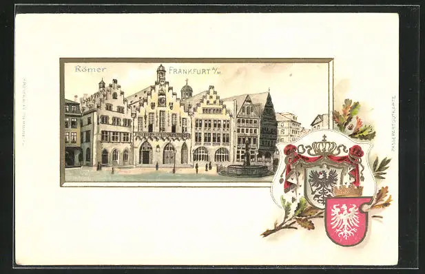Passepartout-Lithographie Alt-Frankfurt, Römer, Wappen