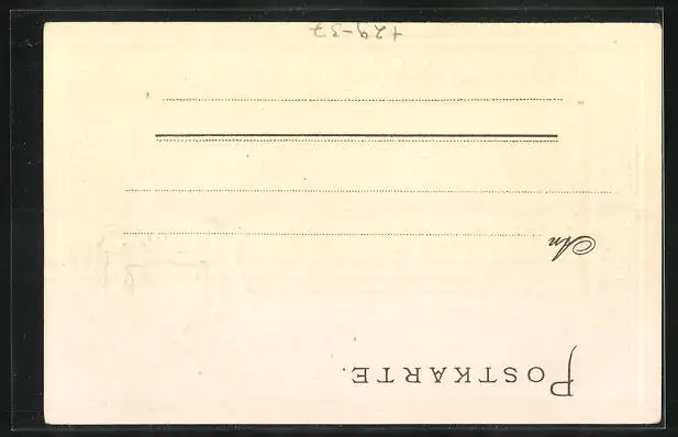 Personenbezogene Daten auf der Rückseite der Karte wurden durch blauen Textmarker unkenntlich gemacht. Die blauen Stellen sind auf die Vorderseite durchgeweicht und wirken sich negativ auf das Postkartenfoto aus