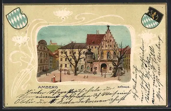 Passepartout-Lithographie Amberg, Rathaus, Wappen