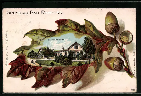 Passepartout-Lithographie Bad Rehburg, Bremer Heilstätte im Eichenblatt