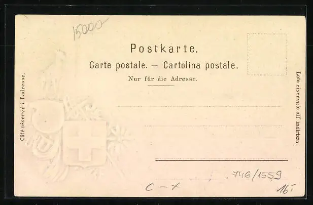Personenbezogene Daten auf der Rückseite der Karte wurden durch blauen Textmarker unkenntlich gemacht. Die blauen Stellen sind auf die Vorderseite durchgeweicht und wirken sich negativ auf das Postkartenfoto aus