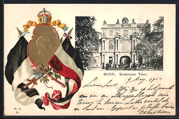 Passepartout-Lithographie Bonn, Am Koblenzer Thor, Reichs- und Preussische Flagge
