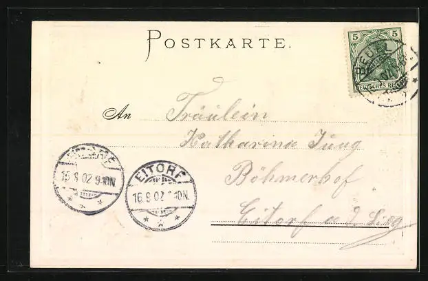 gelaufen 1902, guter Zustand