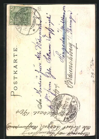 gelaufen 1900, Eckknicke li. oben u. re., untere Kante beschnitten