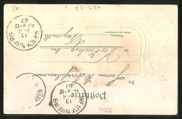 gelaufen 1907, Briefmarke entfernt, Abriebspur oben li. u. unten re., guter Zustand