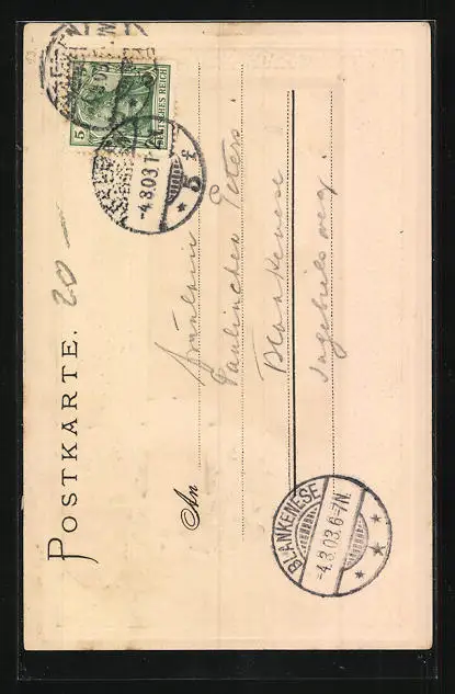 gelaufen 1903, Eckknick re. unten, guter Zustand