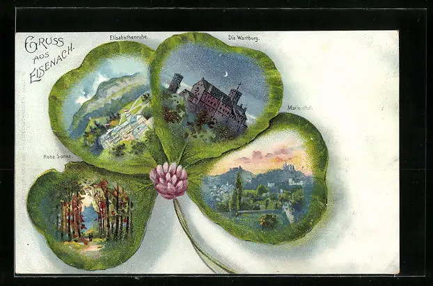 Passepartout-Lithographie Eisenach, Elisabethenruhe, Marienthal und Hohe Sonne im Kleeblatt
