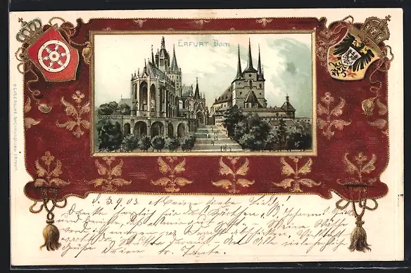 Passepartout-Lithographie Erfurt, Dom, Wappen