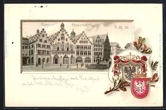 Passepartout-Lithographie Frankfurt /Main, Römer, Wappen