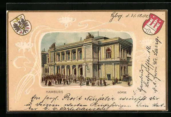 Passepartout-Lithographie Hamburg, Börse, Wappen
