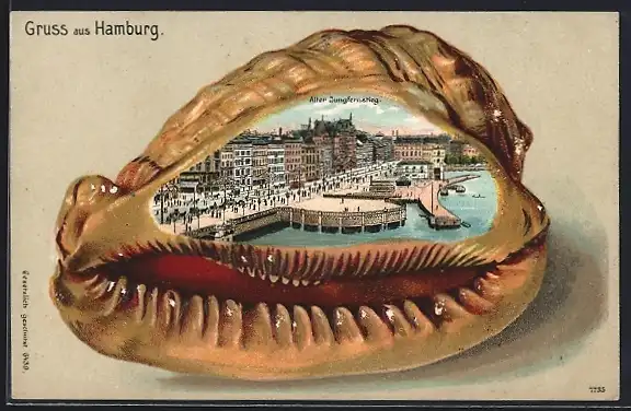 Passepartout-Lithographie Hamburg-Neustadt, Alter Jungfernstieg, Ansicht auf Muschel