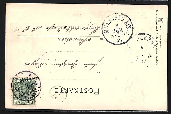 gelaufen 1901, Eckknick re. unten, guter Zustand