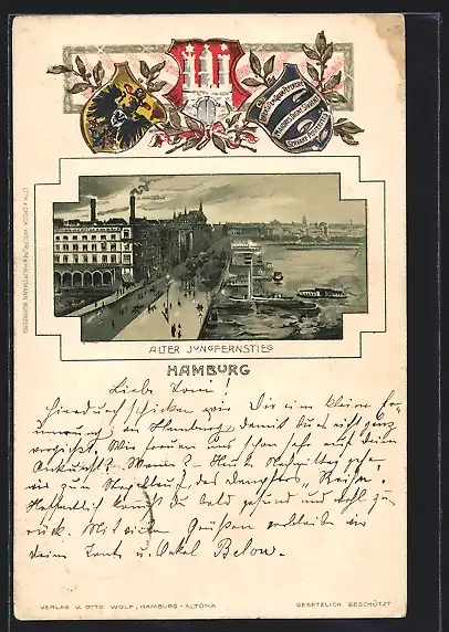 Passepartout-Lithographie Hamburg-Neustadt, Alter Jungfernstieg, Wappen
