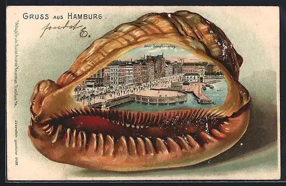 Passepartout-Lithographie Hamburg-Neustadt, Muschel mit Jungfernstieg