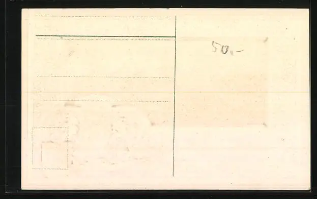 Personenbezogene Daten auf der Rückseite der Karte wurden durch blauen Textmarker unkenntlich gemacht. Die blauen Stellen sind auf die Vorderseite durchgeweicht und wirken sich negativ auf das Postkartenfoto aus