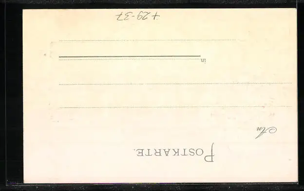 Personenbezogene Daten auf der Rückseite der Karte wurden durch blauen Textmarker unkenntlich gemacht. Die blauen Stellen sind auf die Vorderseite durchgeweicht und wirken sich negativ auf das Postkartenfoto aus