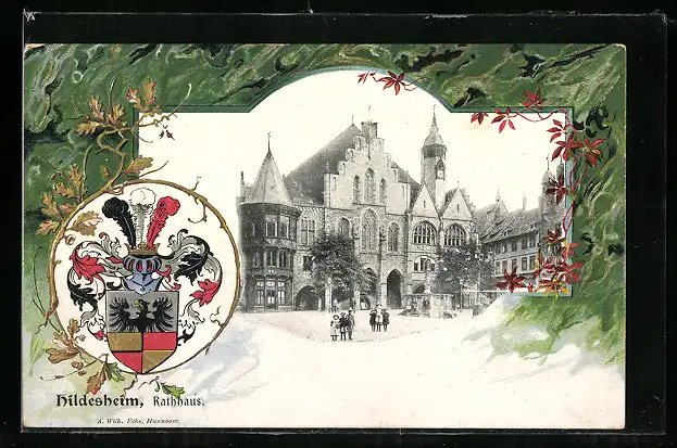 Passepartout-Lithographie Hildesheim, Rathaus, Wappen