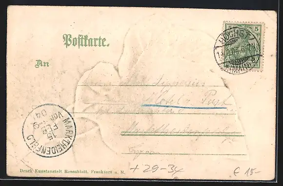 gelaufen 1904, Eckknicke unten re. und oben li., guter Zustand