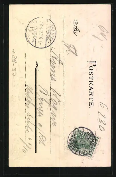 gelaufen 1902, Eckknick re. unten, guter Zustand