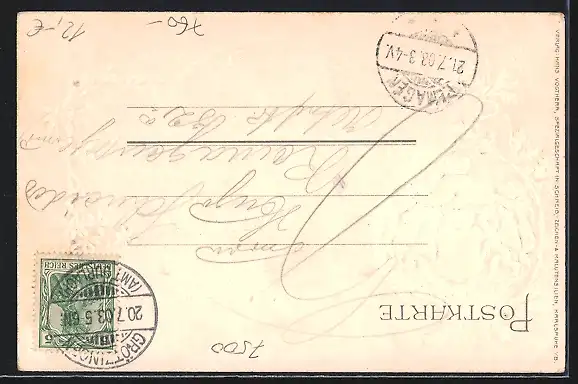 gelaufen 1903, Eckknick li. unten, guter Zustand